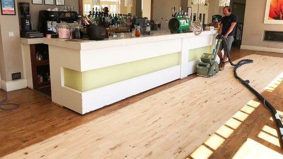Renue UK was called in to help out with a Wood Floor Restoration of the bar area at Bannatyne Hastings Hotel. This lovely wood floor had become very dark and discoloured over the years, as well as showing a few areas of water damage. Our wood floor restoration experts decided that the best approach was a professional wood floor sanding treatment.