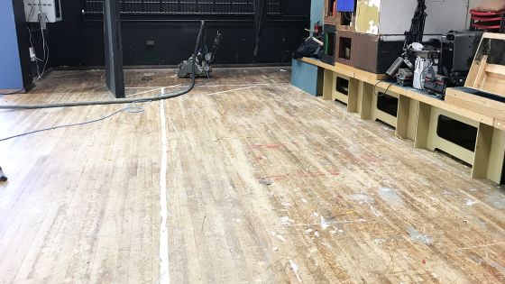 The stage in the main hall at Newmarket Academy was looking truly awful as a result of years of neglect. Our team was called in to help out with this Wood Floor Restoration to try and bring some life back into the floor.