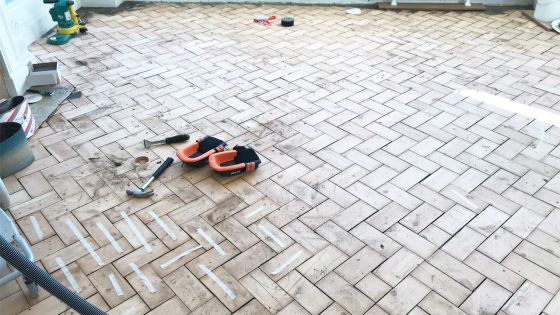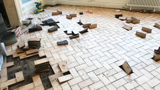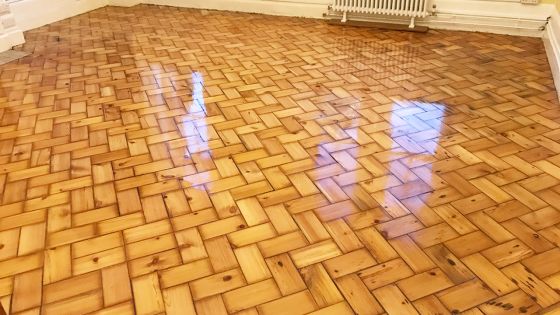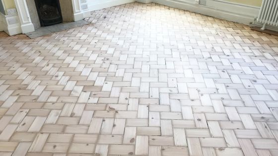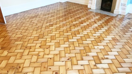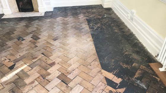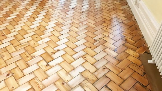 Our team carried out a careful restoration to bring this small herringbone wood block floor, back up to scratch. The results were stunning!