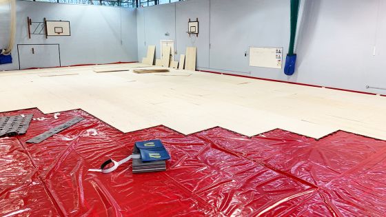To ensure the highest quality of granwood flooring for Falmouth School’s gym and dance studio, we needed install two brand new gransprung flooring systems.