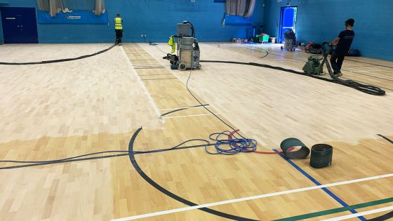 To ensure the highest quality of Wood floor restoration for Abbeyfield School’s sports hall, we needed to sand the floor back and start over.
