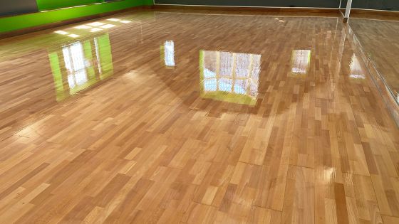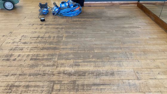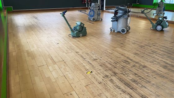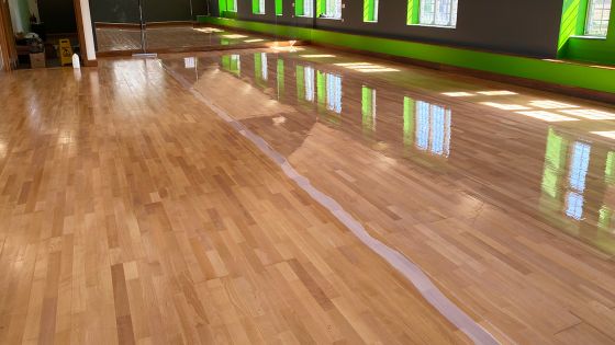 The gym is used daily so we arranged a convenient time to carry out the restoration, with the objective of restoring the appearance of the wooden floor and to ensure its fully functional and fit for use.