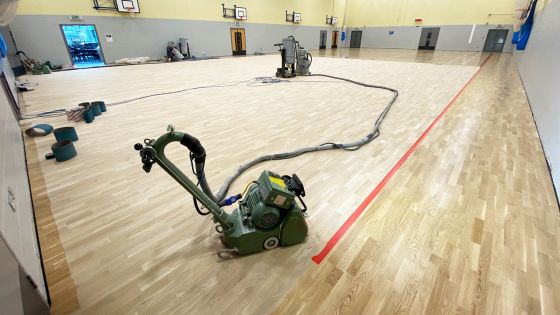 To ensure the highest quality of wood floor restoration for The Madeley Academy sports hall, we needed to carefully sand the floor back and start over.