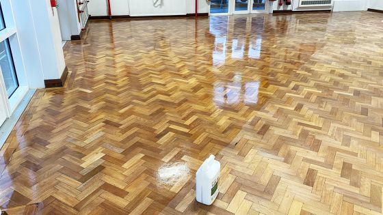 Renue UK were called in for this Wood Floor Restoration of the main hall floor at The Abbey Primary, Northampton. The whole surface of this parquet wooden floor was dark and discoloured from years of abuse, so our team of experts decided a full restoration was the best course of action moving forward. This process involved a full sand and re-seal.
